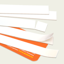 Strisce di velcro® con retro a microventose. Forte adesione ai supporti comunicativi senza collanti, riposizionabili.