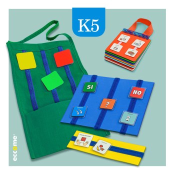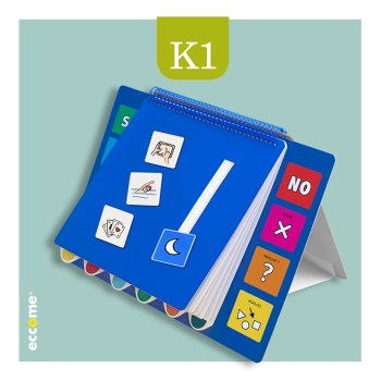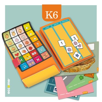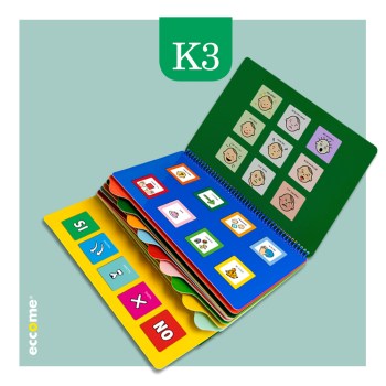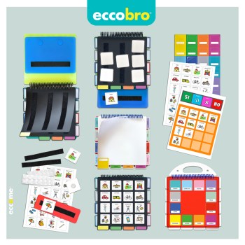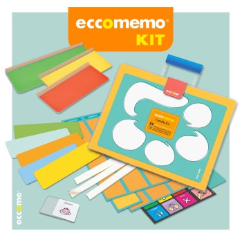 Ideato per supportare educatori e insegnanti in cerca uno strumento di approccio alla CAA organizzato e versatile, include la Cartella Eccomemo, il quaderno, la custodia e 60 tessere simboliche a microventose personalizzabili.