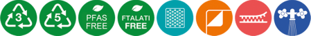 realizzato con materiali plastici riciclabili, ftalati e PFAS free,